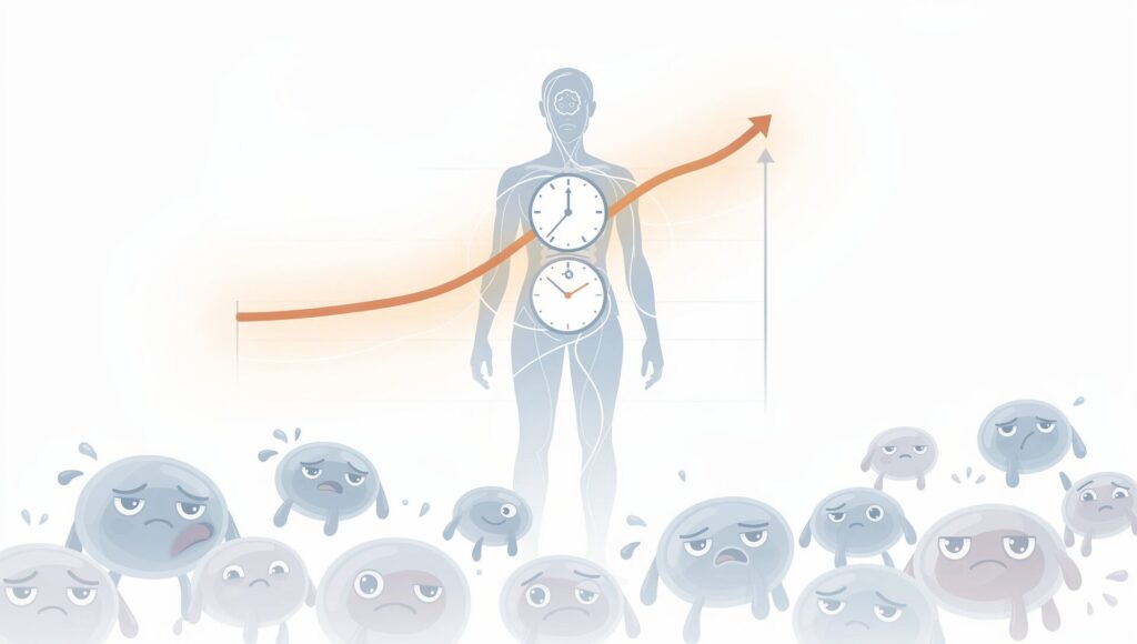 本来なら低下しているはずの時間帯にもコルチゾールが高めに推移することがあり、これが血糖値の調整に影響を与えることがあります。
